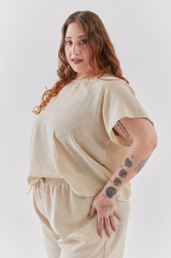 Blusa amplia de lino cascarilla