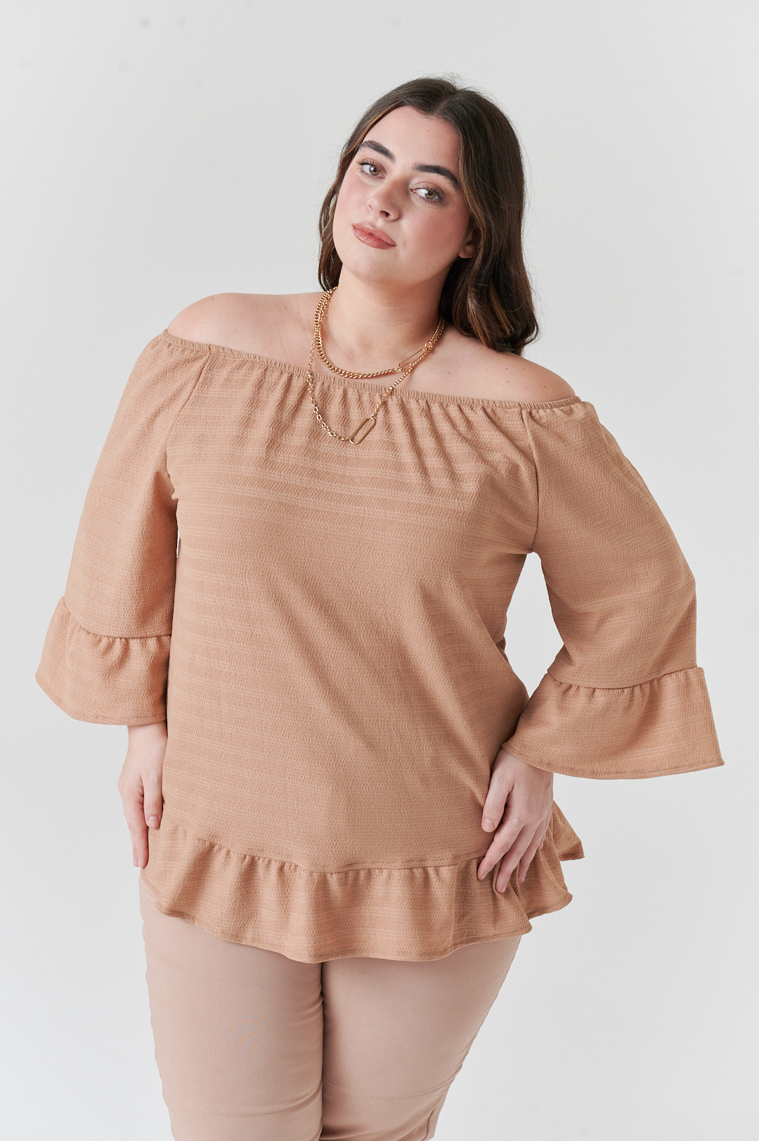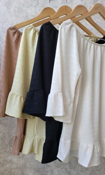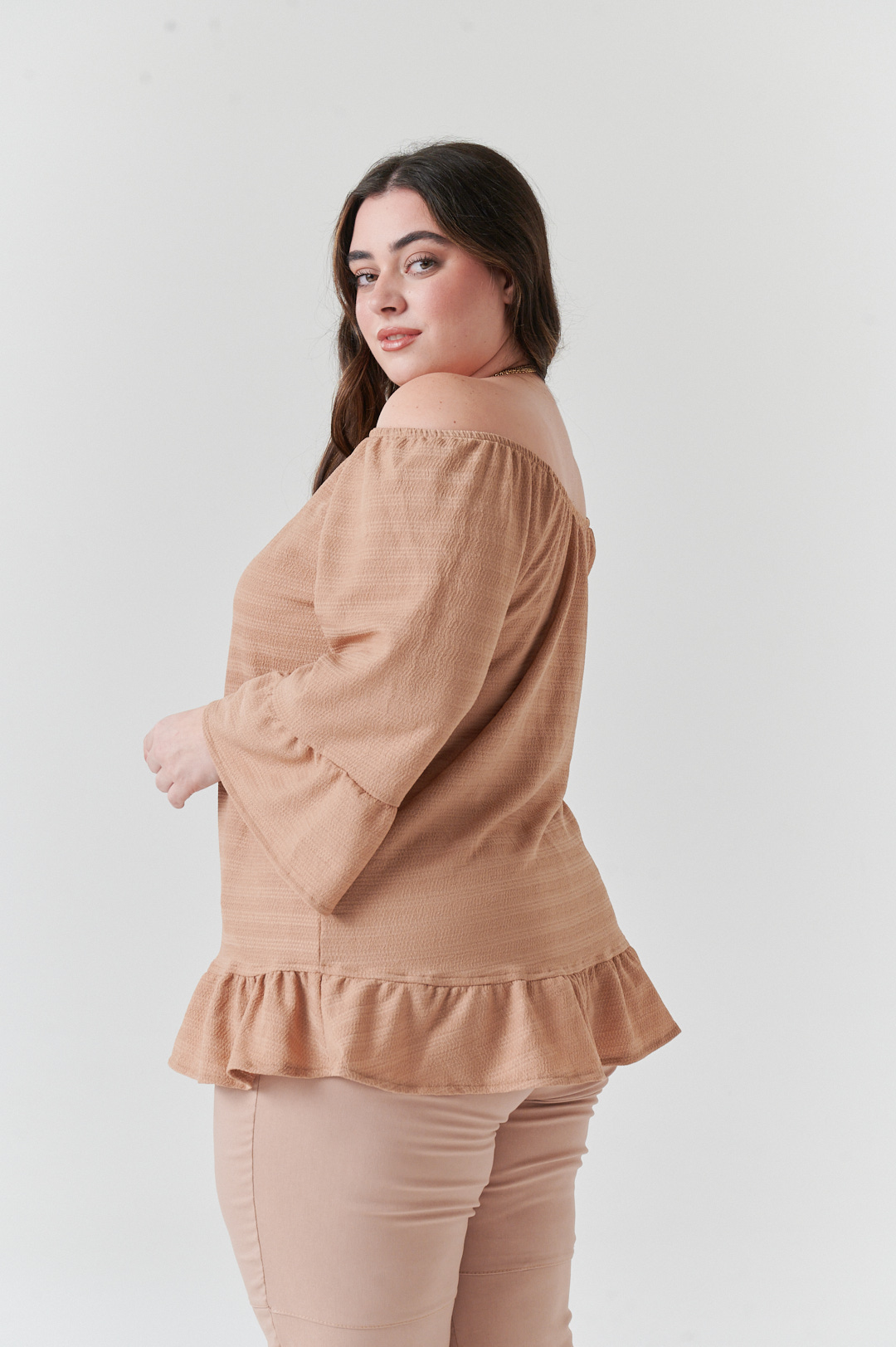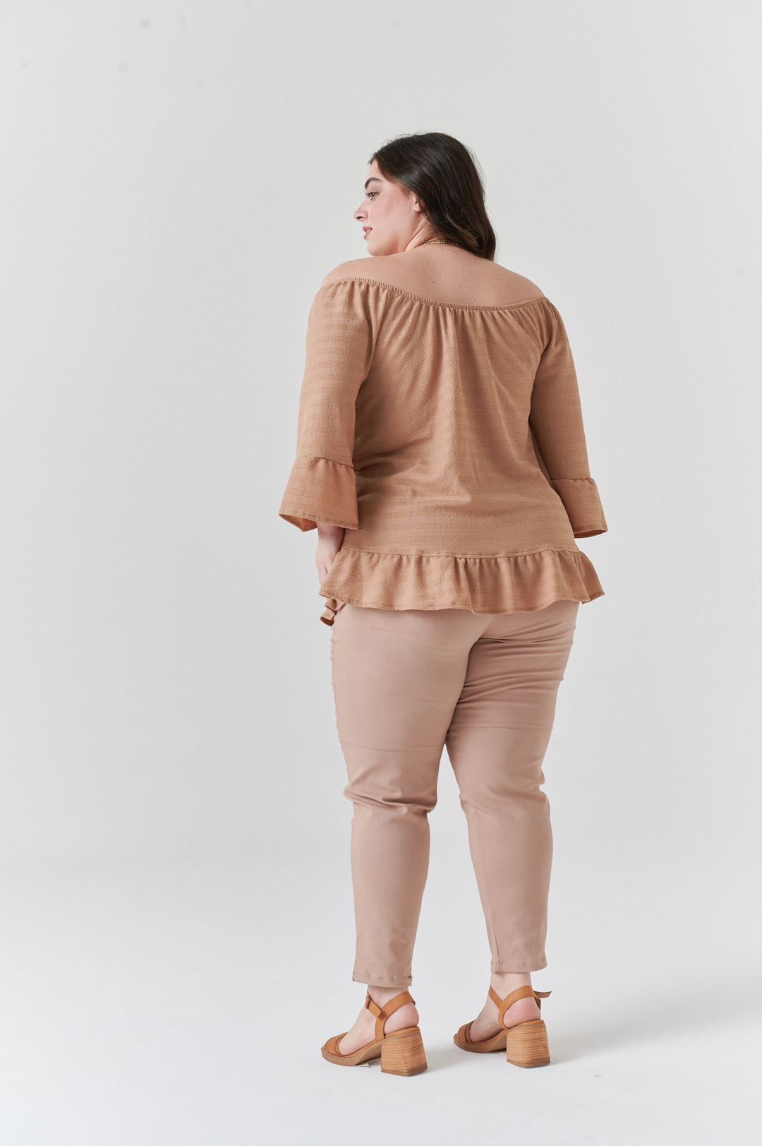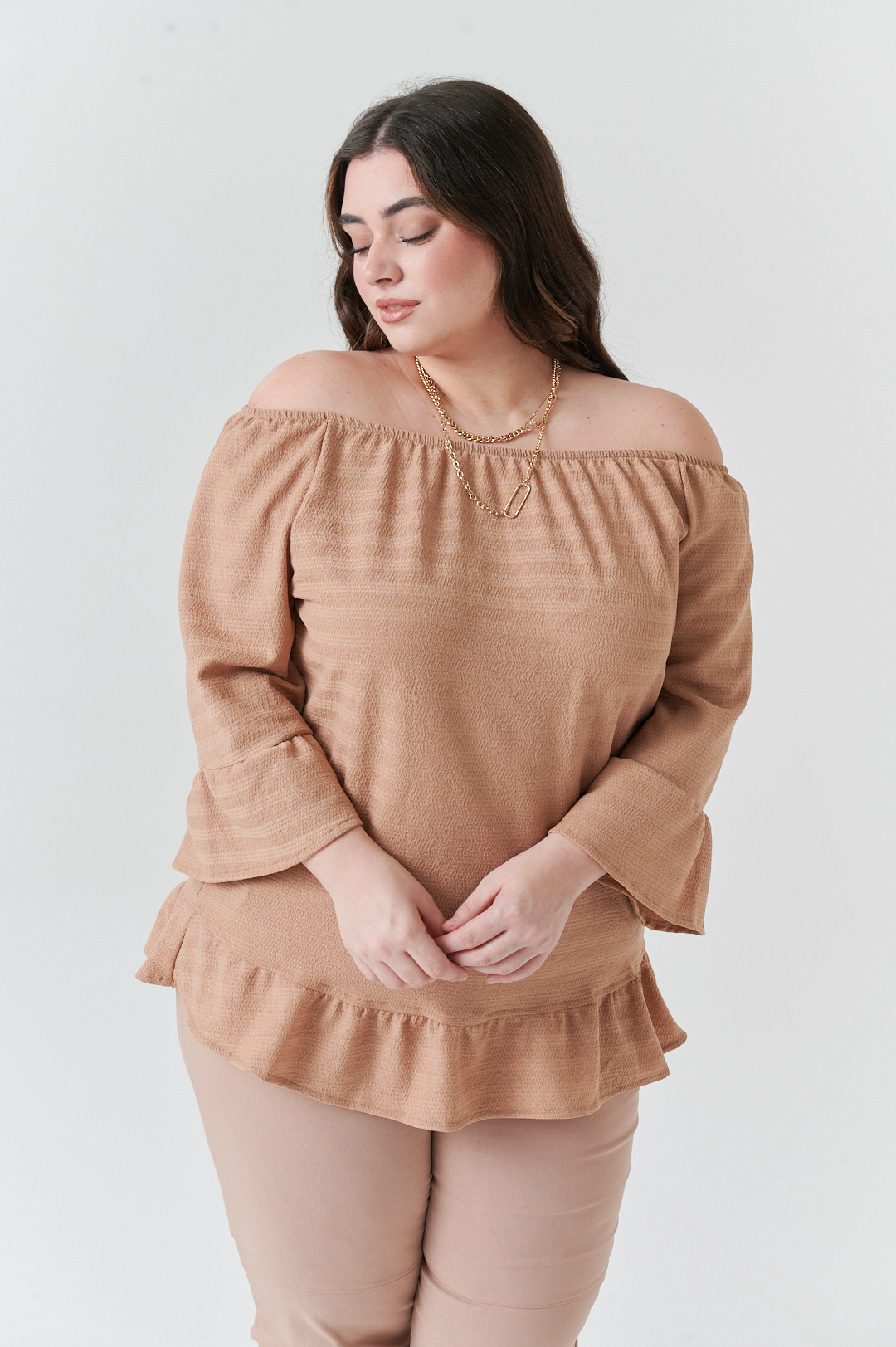 Blusa de tull animal print con bolados y escote V TELA: TULLBlusa de tull animal print con bolados y escote V TELA: TULL