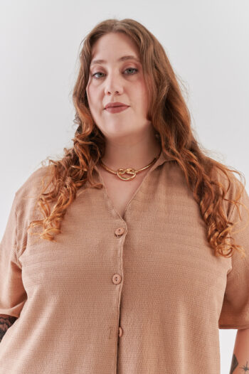 Camisa clásica de Textura fendi con detalle de frunce en cuello.