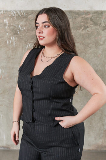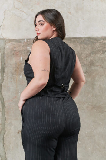 Chaleco sastrero, botones en delantero y presilla ajustable en espalda.