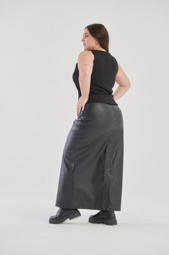 Falda larga de cuerina con tajo