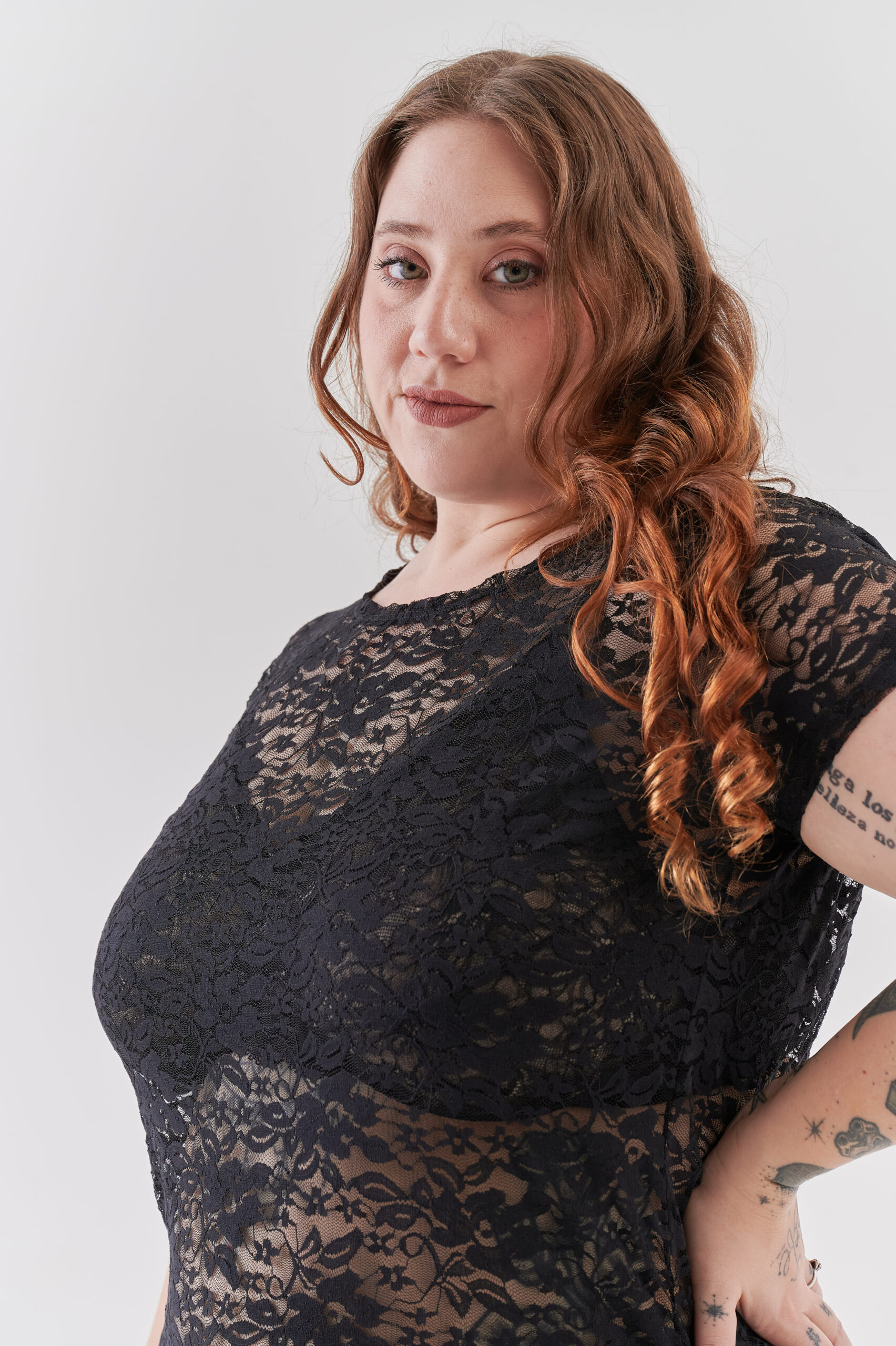 Remera de animal print con puntilla y frunce a los laterales Confeccionada en tela de MORLEY BRUSH ANIMAL PRINT