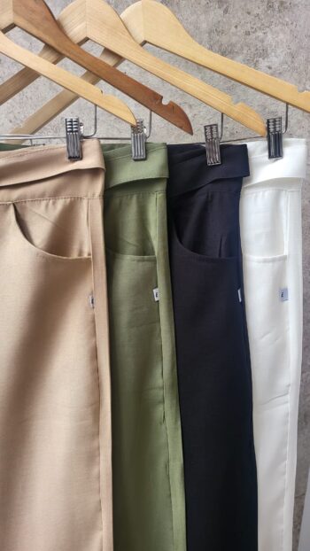 Pantalón tiro alto, medio elastico, con bolsillos Tela: TWILL DE PUNTO grueso