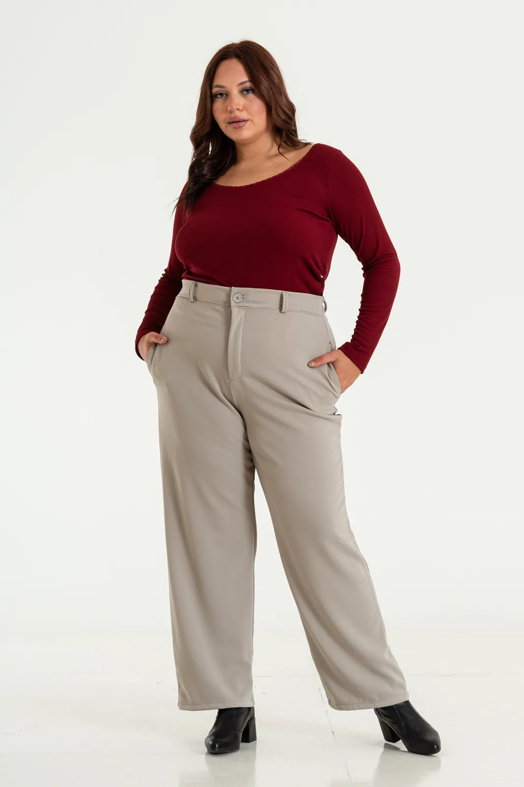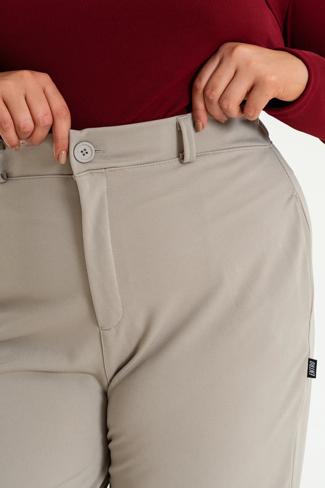 Pantalon sastrero elastizado, tiro alto, con bolsillos