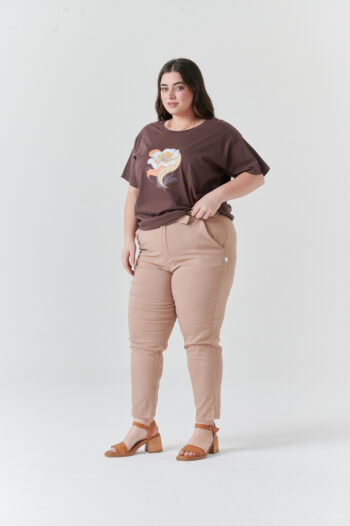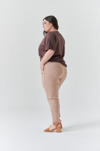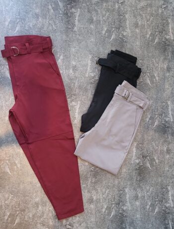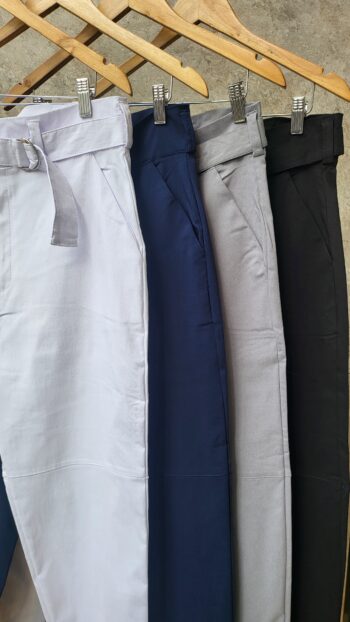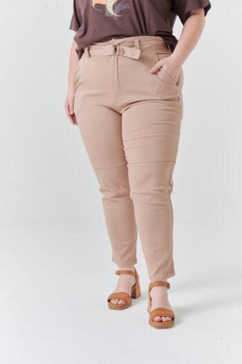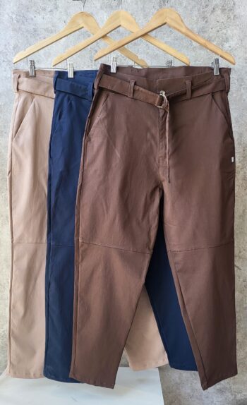 Pantalón tiro alto, medio elastico, con bolsillos Tela: TWILL DE PUNTO grueso
