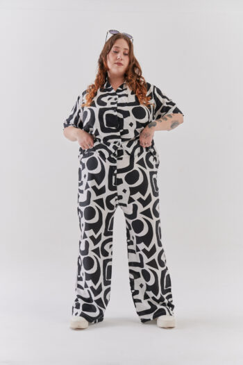 Pantalón tiro alto, medio elastico, con bolsillos Tela: TWILL DE PUNTO grueso