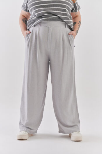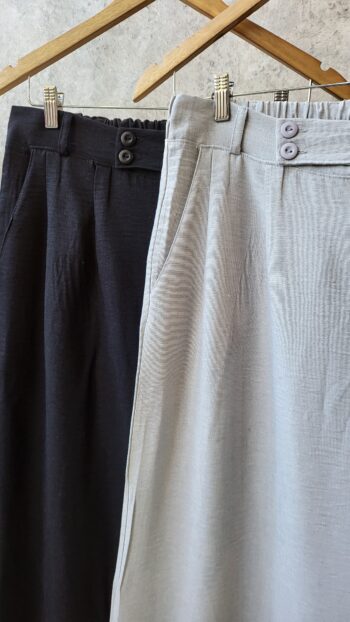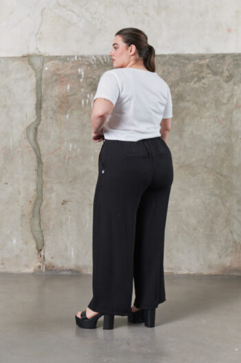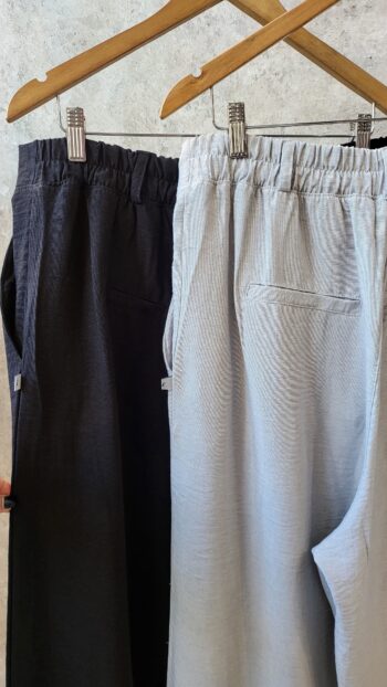 Pantalon tiro algo con bolsillos y medio elastico en cintura