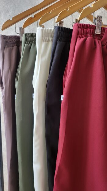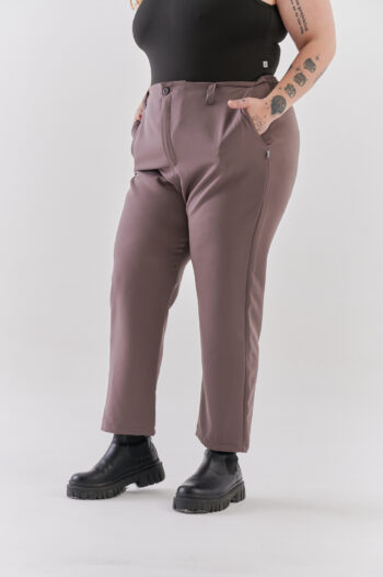 Pantalón tiro alto, medio elastico, con bolsillos Tela: TWILL DE PUNTO grueso