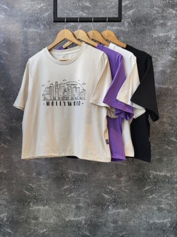 Remera básica, mangas cortas con estampa “Hollywood” en el delantero
