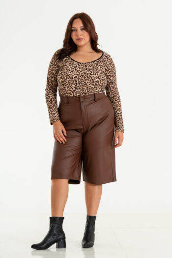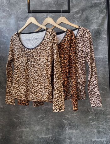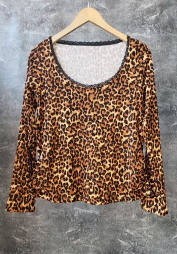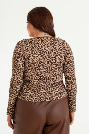 Remera de animal print con puntilla y frunce a los laterales