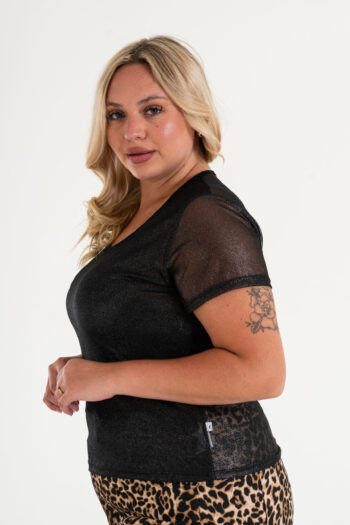 Remera de animal print con puntilla y frunce a los laterales Confeccionada en tela de MORLEY BRUSH ANIMAL PRINT