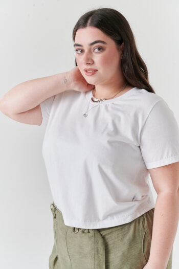 Remera escote redondo con estampa strass "Rodeo Rose"