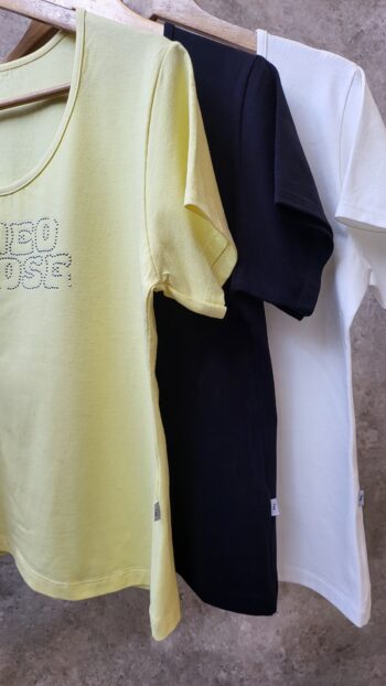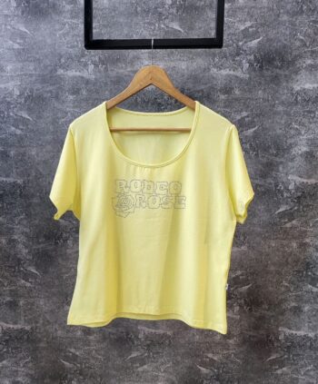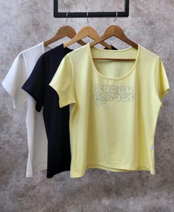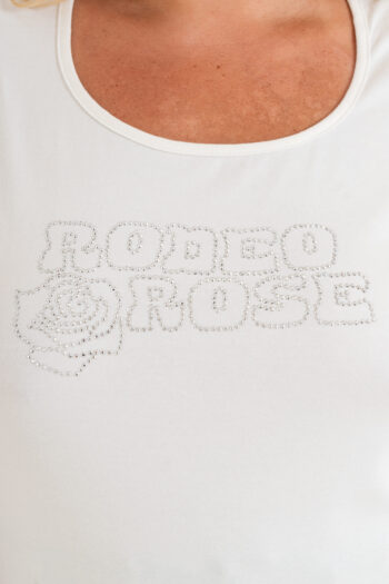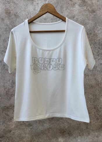 Remera escote redondo con estampa strass “Rodeo Rose”