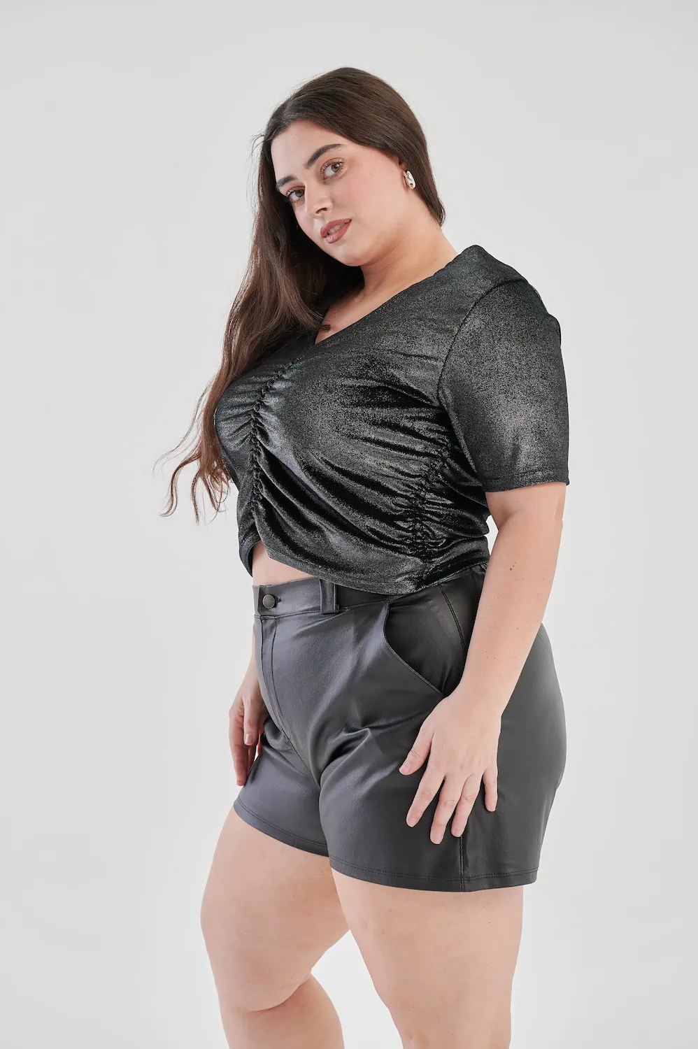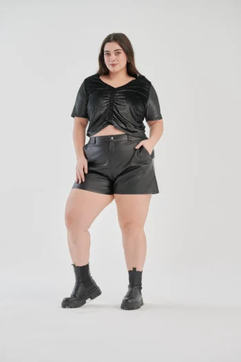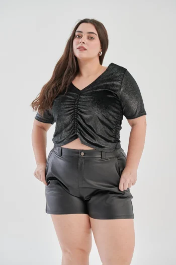 Remera tela VELVET con escote V y frunces en los laterales