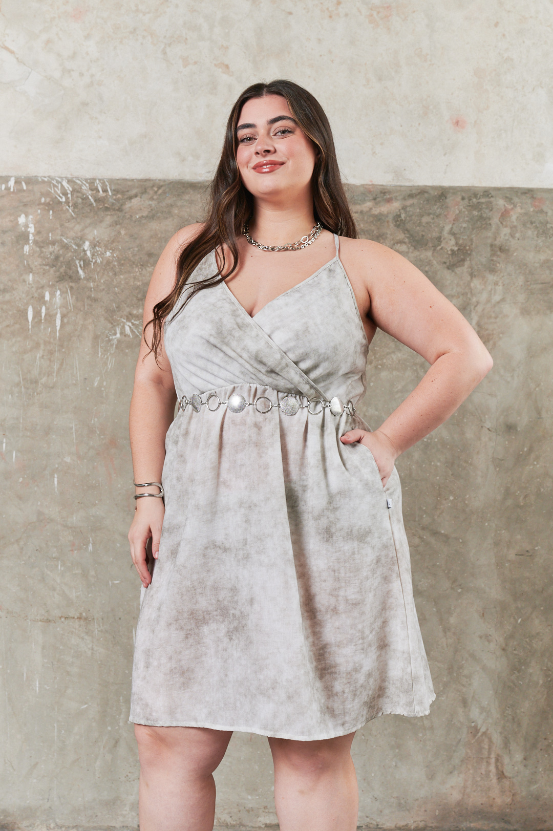 This product has multiple variants. The options may be chosen on the product page Vestido con detalle de hebillas y cierre invisible CONFECCIONADO EN BENGALINA CRACK